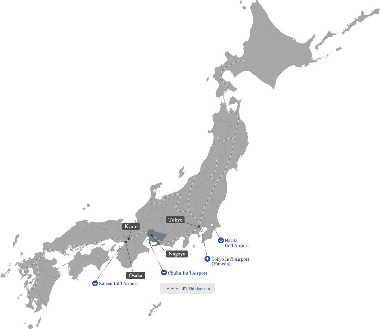 About 18 km away from the nearest station, Mikawa-Tahara Station, it takes about 3 and a half hours to reach from Tokyo Station and about 2 hours from Nagoya Station. You can also use our pickup service if you book it in advance.
